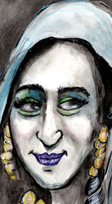 This beautiful lady was spotted in a portrait on the wall of a beloved Kansas City-area Palestinian restaurant. She was so mesmerizing that I had to create my own version.